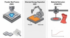 Additive manufacturing encompasses a family of processes (often categorized into seven main types). The most common methods relevant to structural metal parts include: