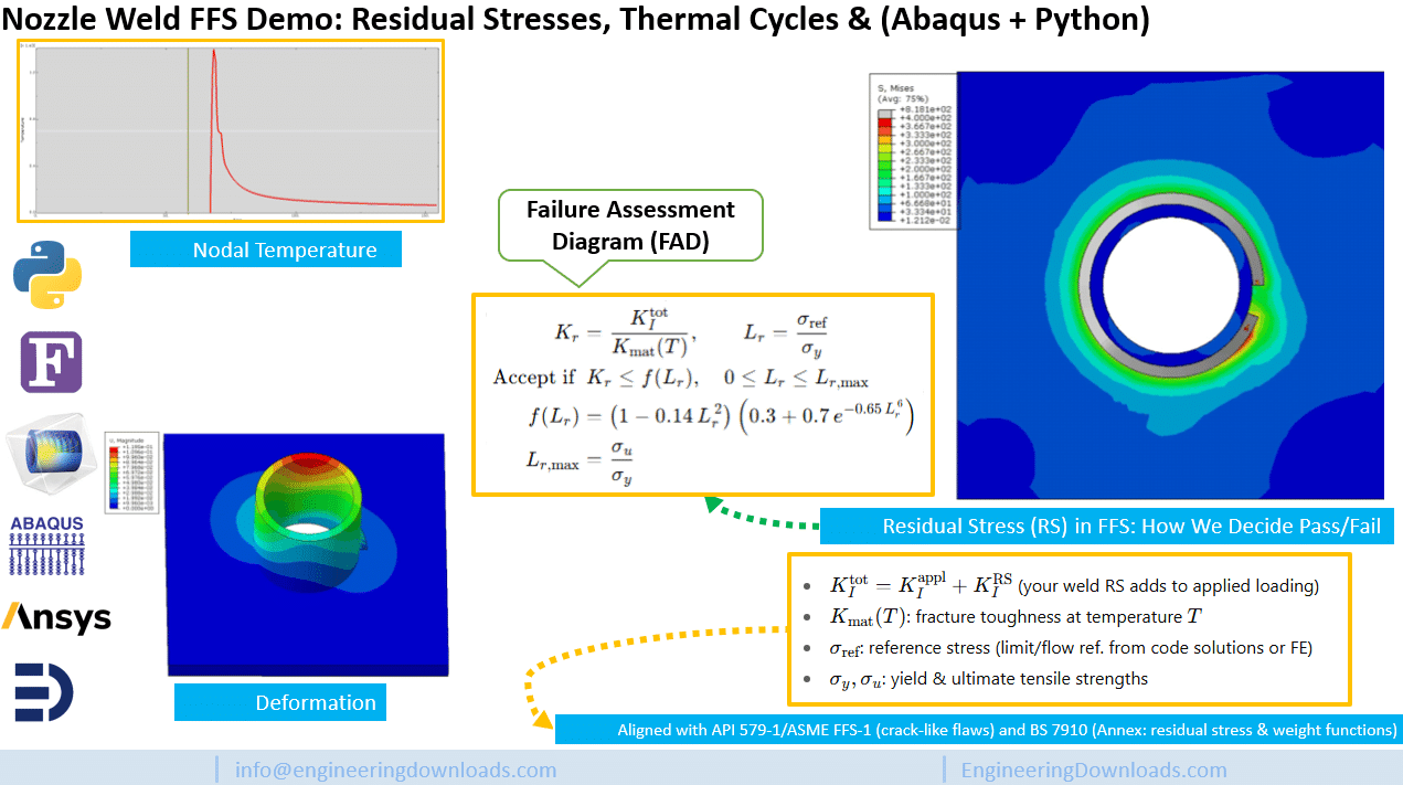 - It directly connects thermal + residual stress data to FFS acceptance with the FAD method.