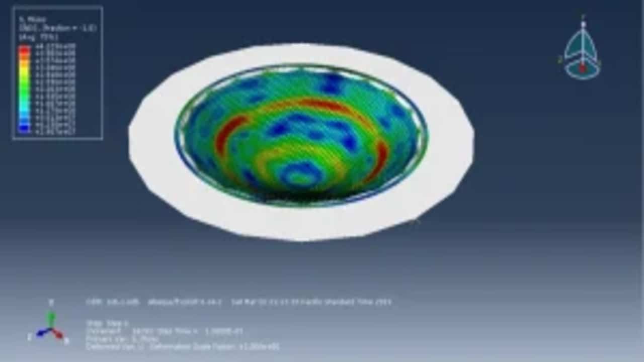 In this tutorial, electro-hydraulic free forming of sheet metals is simulated, according to data from the work of Mane et al.